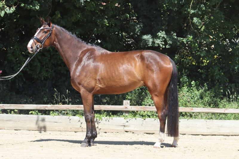 **Droomachtige ruin** Charmant dressuurpaardje in de dop – 4-jarige ruin (De Royal x Weltmeyer, 2021, 1,76 m) Te koop staat een volbloed en opvallende ruin, afstammend van De Royal x Weltmeyer, die nu al buitengewoon veel potentieel voor de dressuursport laat zien. Hij heeft langer dan anderen de tijd gekregen om rustig fysiek te groeien en toont zich sinds de eerste training onder het zadel van zijn beste kant: elastisch, taktzeker en met een indrukwekkende beweging. Zijn natuurlijke bergopwaartse aanleg en uitstekende rijbaarheid maken hem tot een echt toekomstpaard. Karaktertechnisch overtuigt hij door zijn aangename temperament – altijd braaf en zonder ongewenste gedragingen. Daarmee combineert hij talent en instelling, waardoor hij een ideaal partner is voor ambitieuze sportruiters. De merrie-moeder won de Sportschau (1A-premie) en behaalde hoge cijfers tijdens haar prestatieproef. Andere nakomelingen zijn al succesvol gepresenteerd in hogere klassen. Funkenflug: Intermediaire Schweden & Junior Tour Diamantenstern: M** USA First Edition: M* succesvol in Duitsland Een jong paard met perspectief dat wacht op verdere ontwikkeling in de dressuurring. Al hoog geplaatst in opbouwproeven en op weg naar dressuurpaarden L. Een goede röntgenkeuring zonder bijzonderheden ligt voorhanden. Voor vragen graag telefonisch contact: 015128776697 – Jana Kahrs Locatie: 28870 Ottersberg