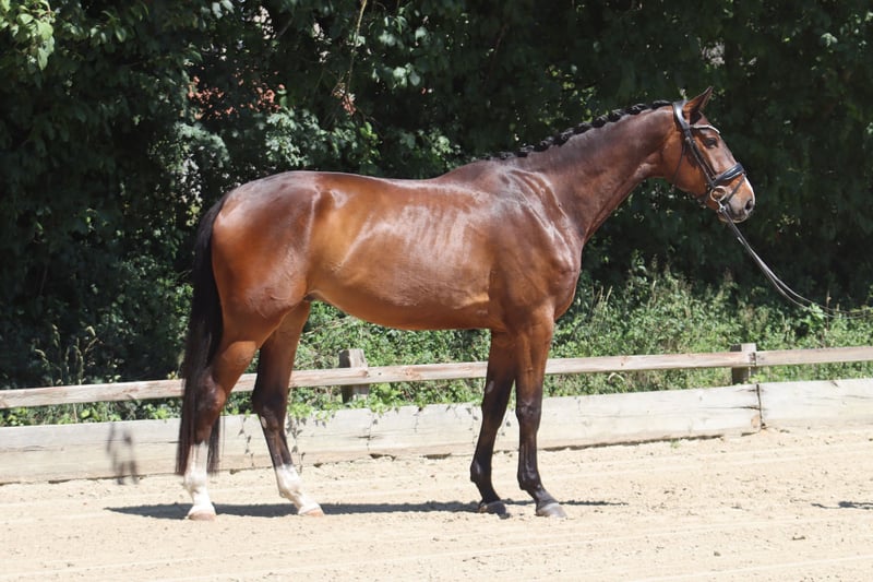 **Traumhafter Wallach** Charmanter Dressurnachwuchs – 4-jähriger Wallach (De Royal x Weltmeyer, 2021, 176cm) Zum Verkauf steht ein typvoller und auffallender Wallach, abstammend von De Royal x Weltmeyer, der bereits jetzt außergewöhnliches Potenzial für den Dressursport erkennen lässt. Er durfte länger als andere, in Ruhe körperlich reifen und zeigt sich seit Beginn der Arbeit unter dem Sattel von seiner besten Seite: elastisch, taktsicher und mit einer beeindruckenden Bewegungsgüte ausgestattet. Seine natürliche Bergauf-Tendenz und hervorzuhebende Rittigkeit machen ihn zu einem echten Zukunftspferd. Charakterlich überzeugt er durch sein angenehmes Temperament – immer brav und ohne Unarten. Damit verbindet er Talent und Einstellung zu einem idealen Partner für ambitionierte Sportreiter. Die mutterstute gewann Sportschau (1A Prämie) und erhielt höchst Noten in ihrer Leistungsprüfung. weitere Nachkommen sind bereits erfolgreich in höheren Klassen vorgestellt. Funkenflug: Intermediare Schweden & Junior Tour Diamantenstern: M** USA First Edition: M* erfolgreich Germany Ein Nachwuchspferd mit Perspektive, das auf seine weitere Förderung im Dressurviereck wartet. Bereits in Aufbauprüfungen hoch platziert und auf dem Weg Richtung Dressurpferde L. Ein guter Röntgentüv o.B. liegt vor. Anfragen bitte telefonisch an: 015128776697 - Jana Kahrs Standort: 28870 Ottersberg