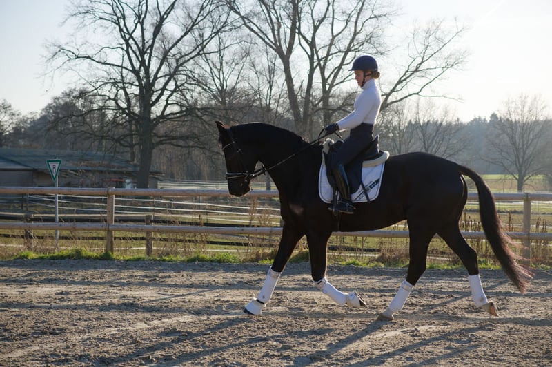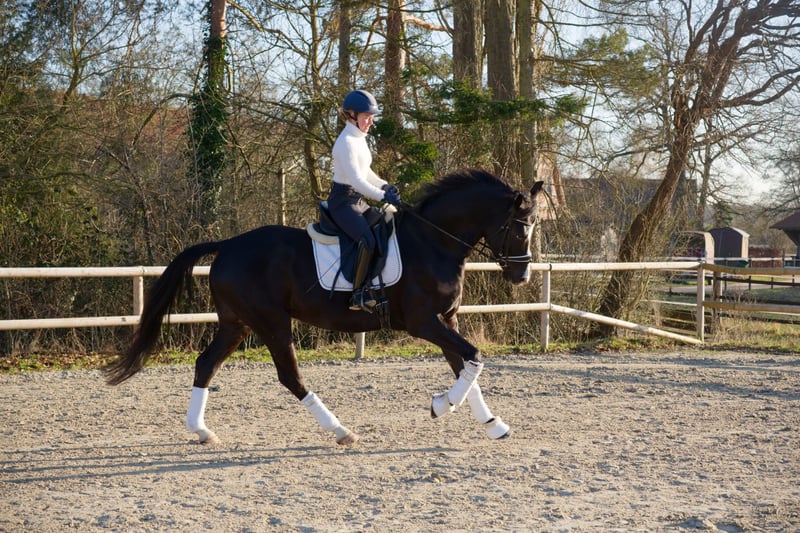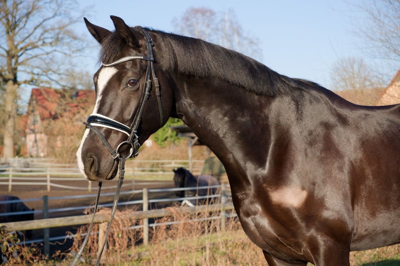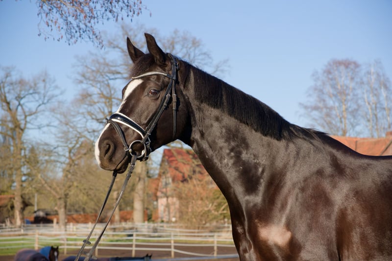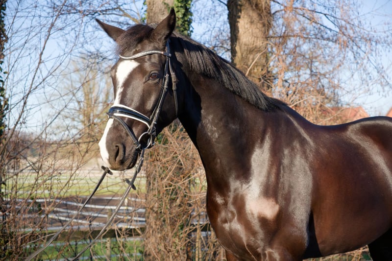 For sale is the Oldenburg gelding Dark Diamond, a tall, modern black stallion born on May 15, 2020, with an current height of 16.1 hh. He is sired by Desperado out of Lauries Crusador xx – a highly interesting combination of performance ability, rideability, and modern dressage aptitude. "Diamond" was gently backed at the age of four and now presents himself as attentive and motivated during work. He impresses with his harmonious conformation and three appealing basic gaits. Under saddle, he is currently competing at A-level dressage. He already trains simple flying changes and extended trot as part of his daily routine. He shows a strong willingness to learn and responds pleasantly to voice aids. In daily handling, "Diamond" is well-behaved, uncomplicated, and very agreeable. He is shoe- and loading-safe, fully vaccinated, and regularly wormed. He currently spends his days outside in a mixed herd and stays in his stable at night. In the herd, he is lower in rank, social, and very tolerant. He especially enjoys playing with his gelding friends. He is also absolutely straightforward, calm, and very gentle when interacting with mares. A comprehensive health check including X-rays of the neck, back, and all limb images was performed in December 2024 – all results were unremarkable! Due to his age, "Diamond" is not suitable for beginners or insecure riders but is ideal for riders with some experience who enjoy dressage training and young horse development. Feel free to contact us without obligation to arrange a viewing appointment! 01578 4321840