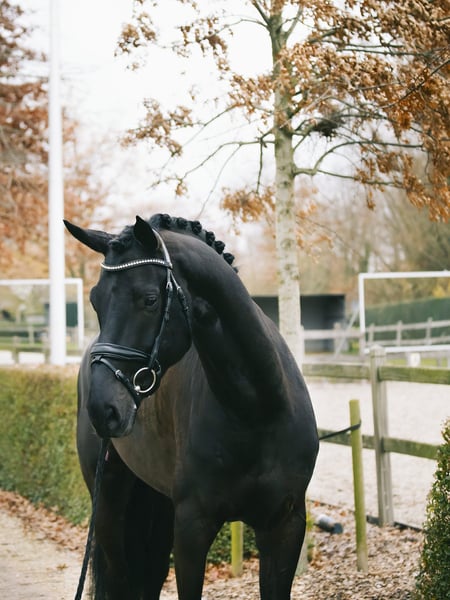 5.5-year-old gelding by Maracana x Sarkozy x Del Piero – 174 cm (approx. 17.1h) Meet this super charming and clever black beauty! Maestro is a fun, sweet-natured horse with a heart of gold. He is soft and sensitive, yet not hot or touchy—an ideal combination for a rider who appreciates a willing and responsive partner. His ability to learn is truly impressive; he understands new things incredibly fast and shows remarkable intelligence. He is naturally supple through his body. Although he has only been in full training for two months and arrived going at a basic 4-year-old level, he is already performing half-passes in both trot and canter. The flying changes he understood from the very beginning, and he will no doubt be able to do tempi changes easily within the next six months. His walk is active and ground-covering, and in canter he jumps nicely uphill, showing excellent potential for beautiful pirouettes next year. The trot is expressive with good cadence and activity. For the extended trot, he still needs some time to really open up rather than rush, but the talent is absolutely there. Maestro is also a fantastic investment horse due to the price and (short term) potential. If I had the budget, I would keep him myself for another 6–12 months of training and then resell him. Please do not contact me or amateur riders. This horse has too much talent to go to waste. Located near Ghent, Belgium. Priced in the mid five figures. Full set of X-rays available.