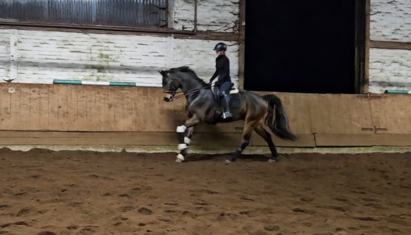 Dressur-/ Gehobenes Freizeitpferd mit tollen Grundgangarten zu verkaufen. 2019 Geboren 1,66m groß und Abstammend von For Dance × Sandro Hit. Röntgenbilder von 2023 Vorhanden. Dressurpferde A platziert, beherrscht die L Lektionen und ist auch schon an die Kandare gewöhnt. Im Umgang total Brav, auch von Kindern Händelbar. Kleine Sprünge macht er auch sehr gerne sowie ausreiten und auch einfach mal rum tüddeln liebt er. Ein Tolles Familienpferd einfach zum Spaß haben! Auswärtstraining sowie auf Turnier ist der Wallach voll bei der Sache dabei und nicht glotzig. Bei weiteren Fragen, gerne melden!