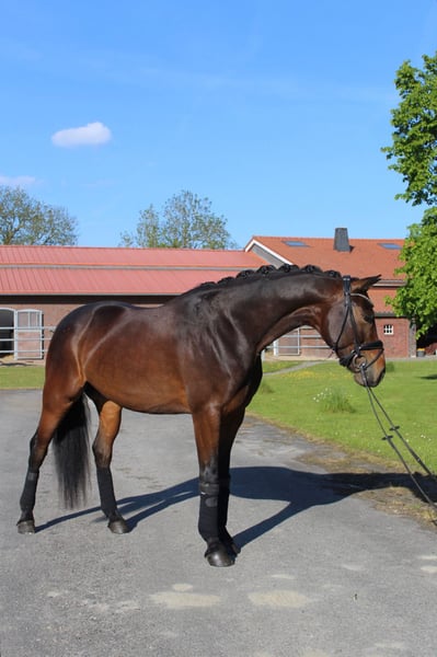 Dressage / Premium leisure horse with excellent basic gaits for sale. Born in 2019, standing at 16.1 hh, sired by For Dance out of Sandro Hit. X-rays from 2023 available. Placed in Dressage Horse A, he masters all L-level dressage movements and is already accustomed to the double bridle. Completely well-behaved in handling, even suitable for children. He also enjoys jumping small courses, hacking out, and simply hanging out. A fantastic family horse, perfect for fun and companionship! During training and at competitions, the gelding is fully focused and not spooky. Price: €15,000–€20,000 Feel free to contact us for more information!