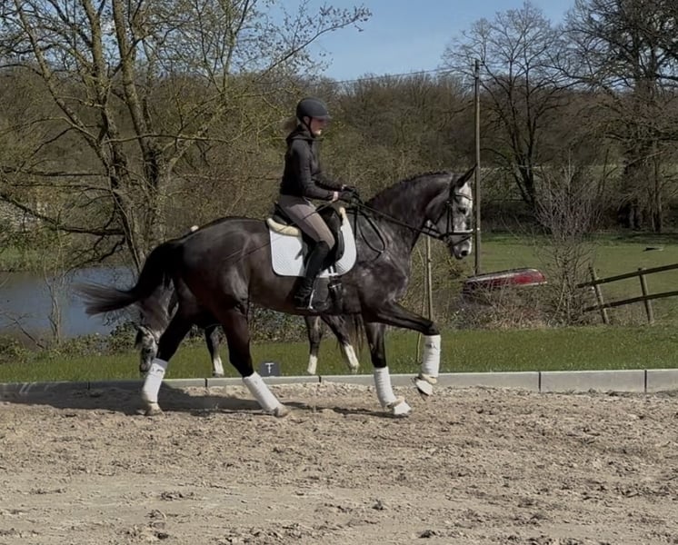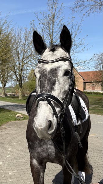 We are offering Enno, a rideable and energetic 7-year-old gelding, for high-level dressage sport. Purchased as a foal from the breeder, he has been trained appropriately for his age. Enno is a half-brother to the renowned sire Floricello (Wadenspanner). He has achieved success in class A** and has placements in dressage competitions of classes A and L. Enno demonstrates particular talent for lateral movements and extensions. After a winter break due to weather, he is now back in regular training and is currently learning flying changes. He is eager to learn and shows great potential for the big arena. Additionally, he enjoys hacking out and has been introduced to jumping up to class A. Due to my professional commitments, I am unable to dedicate the necessary time, so we are seeking an experienced and ambitious rider to further develop this promising young horse. Enno is a modern sport horse ready for the next career step, suitable for the big dressage arena. At three years old, he received a flawless breeding inspection, and there has been no further TÜV assessment since then. Enno has never been lame. To avoid riding tourism, we charge a fee of €25 for trial riding, which will be credited towards the purchase if successful.