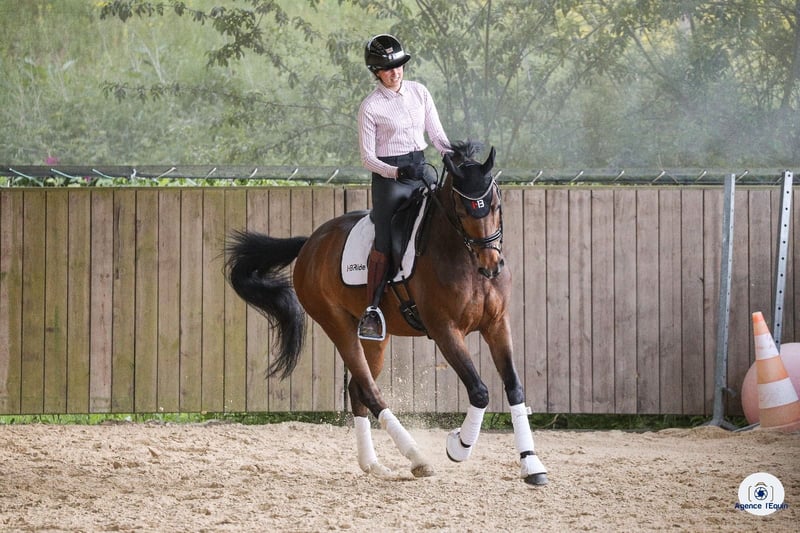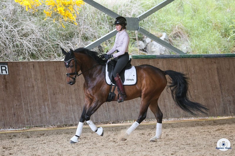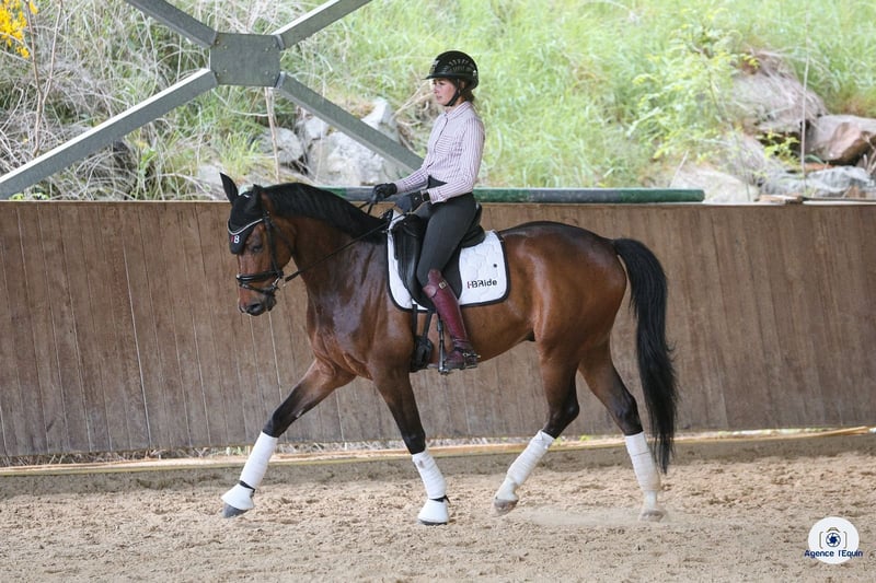 Cheval dressé niveau jeune cavalier, début St Georges, facile à monter Changements de pied rapprochés acquis 4 et 3 temps. Début des 2 temps Adorable aux soins et très attachant Très bonne visite vétérinaire, cheval très sain dans ses membres
