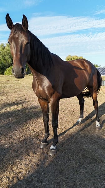 **Sales Advertisement: Oldenburg Show Jumper** For sale is a talented Oldenburg gelding, born in 2021. With a height of 170 cm and his impressive brown coat, he immediately draws all eyes to him. This horse has great potential in show jumping and already shows promising approaches. He is well-trained and has an excellent attitude towards training. His friendly nature and willingness to learn make him an ideal partner for ambitious riders. The gelding is well-behaved and reliable both in handling and under saddle. He is excellently suited for competition as well as for leisure riding. If you are interested or have further questions, please feel free to contact me. Visit us and see for yourself. Tel. 0174 7399195