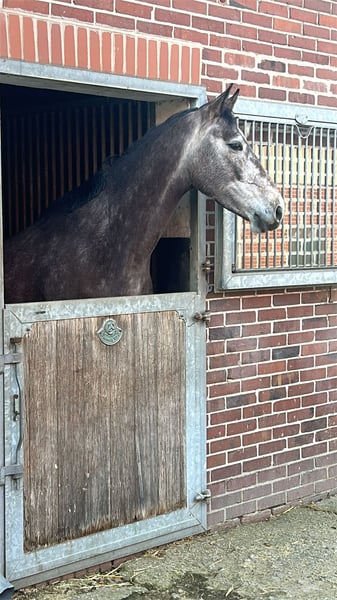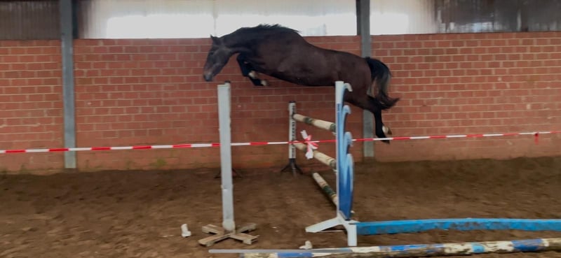 Hoffnungsvolles Springnachwuchstalent von Charthago-Blue aus Action Breaker-Landadel-Mutter. Behutsam angeritten, fein und locker zu reiten. TüV i.O., schmiede- und verladefromm.