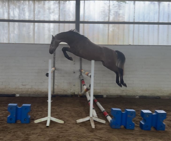 We are selling our exceptionally well-behaved gelding in a stylish coat. Last year, he was gently backed by our 18-year-old daughter and has gained some competition experience this year. Don't be fooled by his size, as he has a powerful canter and jumps beautifully. Nekoma is calm and easy to handle, stands well for the farrier, and loads without issues. He rides confidently alone in the field and handles all other situations with ease. He is also suitable for beginners or novice riders. X-rays and hooves are in excellent condition. Truly a dream horse. More videos are available via WhatsApp. Please feel free to contact me with any questions. Best regards