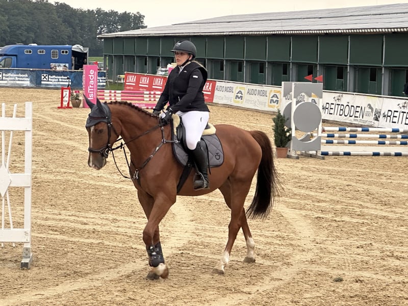 Verkaufe Oldenburger Springpferd – Wallach , geb. 2021 Zum Verkauf steht ein prachtvoller Oldenburger Springer, geboren im Jahr 2021. Dieser elegante Fuchs überzeugt durch seine beeindruckende Erscheinung und sein vielversprechendes Springvermögen. Er befindet sich zur Zeit im professionellem Beritt.Mit seinem kräftigen Fundament und seinem ausgeprägten Sprungvermögen ist er bestens für den Turniersport geeignet und zeigt bereits jetzt großes Potenzial für die Zukunft. Der junge Wallach ist freundlich im Umgang, lernwillig und besitzt eine vielversprechende Grundausbildung. Er ist gesund, regelmäßig geimpft und frei von bekannten Krankheiten. Vater ist Lex Luger- Hamburger Derbysieger die Mutter wohl bekannt und Jahrelang in unserem Besitz und freundlich im Umgang. Lex ist unter unserer Obhut gezogen und sollte als Nachwuchspferd für meine Töchter dienen. Unsere Familienplanung hat sich geändert und daher geben wir Lex ab. Auf Turnieren ist er ungewöhnlich diszipliniert und gehorsam. Es fällt auf das er sich nicht von Material im Parcour beeindrucken lässt. Wir haben in der Ausbildung stets auf Ausgewogenheit geachtet. Behutsam wurde er angeritten. Er ist charakterstark, selbstbewusst und schmust gern. Vom ersten Tag an war Hängerfahren oder LkW Verladung nie ein Problem Ein Pferd mit dem besonderem Etwas.
