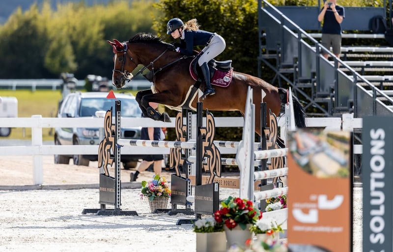 Aurora is a 12-year-old mare by Cador out of a mother from the Adlantus As line (Argentinus x Lantaan). She was purchased three years ago by a young junior rider and has successfully competed up to 1.20 m. Her trainer has also entered her in a few 1.30 m classes, for which she has the quality if needed. Aurora is careful, possesses a lot of strength and talent, and has quite a bit of go when jumping. Nevertheless, she would also be suitable for a well-riding child or junior rider. In dressage, she is pleasant to ride, maintains a good connection, and moves forward comfortably. She is also familiar with hacking, daily turnout, and outdoor rides. Current X-rays are available. We have several other interesting horses listed in our other ads. If you are looking for something different, please feel free to contact us. Want to see proof of our professionalism? Visit our Facebook page, where you can find reviews from our international clients.