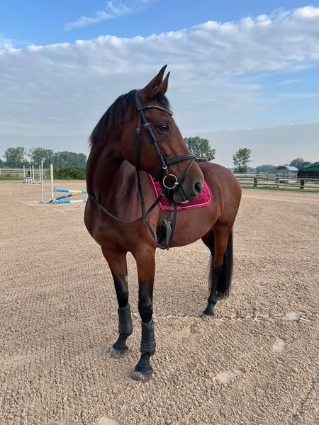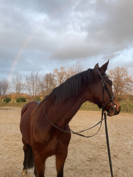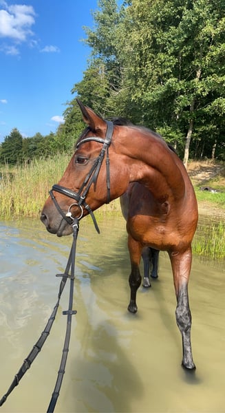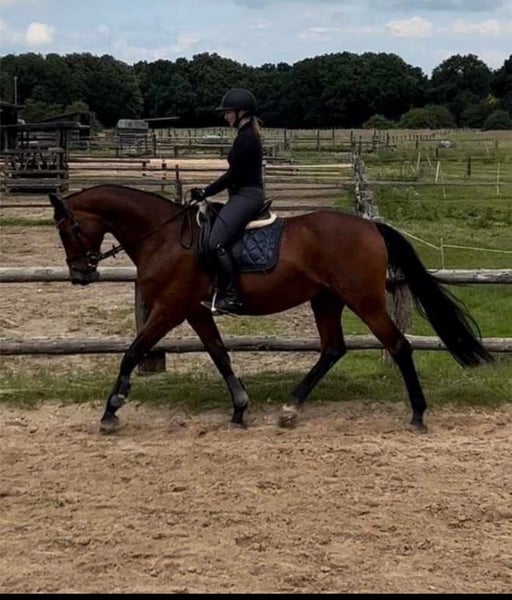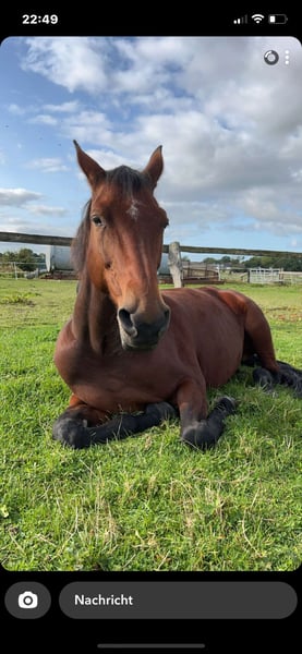 Oldenburger Stute 15 Jahre 1,66m groß Freizeit Geritten Kennt Hunde, Kinder Platz, Halle, Gelände, Longieren Verladefrom Kein Steigen, kein Buckeln, kein Losrennen. Sie kennt Box, Offenstall und 24/7 Weide, respektiert Zäune und ist unkompliziert im Umgang. Vorgeschichte: – Griffelbeinbruch hinten rechts (2021) – Sehnenschaden (2022), wurde per Eigenbluttherapie behandelt, seitdem beschwerdefrei im april wurden die Zähne gemacht alle Impfungen auf dem Aktuellen Stand gerne wird ein für immer zu hause gesucht bei einem Freizeitreiter Trense, Sattel, Halfter, Gamaschen, Putzzeug, Regendecke, Winterdecke, Fliegendecke gibt's gegen Aufpreis dazu. < 5.000€