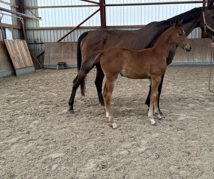Directly from the breeder: Beautiful, light-footed daughter of the world-renowned OGANO SITTE. With strong movement and an open demeanor, she shows great elasticity in all gaits. With a clear mind, this little athlete aims to please every day: With enough spring and an active hindquarters, always uphill, we are excited about her sporting future. The mother, a Zangersheide-bred LANDOR S mare, was successfully competed by an amateur up to class M and was already qualified for the World Championship for Young Horses in Lanaken at a young age, winning up to class M. A mare with a lot of attitude and the necessary caution with quick reflexes. Her offspring all impress with rideability, clarity of mind, a great attitude, and suitability for amateurs. Raised in a family environment, the foal knows the basics and is taken out to the pasture daily. Video: https://youtu.be/eXX_v4W-Gu4?si=_5QLGXFeeFZaovXz