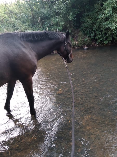 Our Acadia is looking for a new home with a heavy heart. Due to a serious illness of our 6-month-old son, we are unfortunately no longer able to give her the care she deserves. I have been in the hospital around the clock for the past six months. Acadia can also stand for two weeks without riding and then be ridden again immediately. Currently, however, even basic care for our mare is hardly possible. Therefore, we are seeking a wonderful new home for our Oldenburg mare. The last time she was ridden was a year ago, so she would need to be retrained. I see her primarily suited for therapeutic riding or leisurely trail rides, as her arthrosis can sometimes cause discomfort. She is a very reliable, people-oriented horse, familiar with children, and unshakable in her nature. She is comfortable riding bareback, going on holidays, and riding bitless in the field – she knows almost everything and is easygoing with any antics. In groundwork and free work, she is very sensitive and enjoys working with people. Due to her arthrosis in the carpal joint, jumping, tight turns, and similar activities are no longer possible. She would be ideally suited as a companion horse or for relaxed trail rides. She does not require medication. She is barefoot and wears hoof boots for rocky terrain. I acquired her eight years ago from her previous owners, who trained her themselves and competed in jumping, dressage, and eventing up to L/M level. The arthrosis existed already eight years ago and has not worsened during this time. It is very important to me that she does not end up at a slaughterhouse or with a dealer, but in loving hands. I am generally not asking for money; as a protection fee, I would like to sell her equipment (blankets, bridle, etc.) including the saddle for €500. Absolutely priority is her well-being over price. Depending on the circumstances, I could also consider lending her out. I am happy to organize transportation and would cover at least half of the costs, depending on distance and expenses.