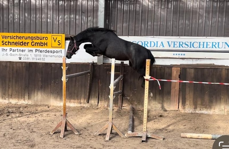 Mit unheimlich guter Technik, viel Vorsicht und „Gummi“ am Sprung zeigt sich diese junge Stute am Sprung. Sie ist geritten und macht bereits einzelne Sprünge unter dem Sattel. Bei Interesse melden sie sich sehr gern unter 01742020310. Wir freuen uns auf sie.