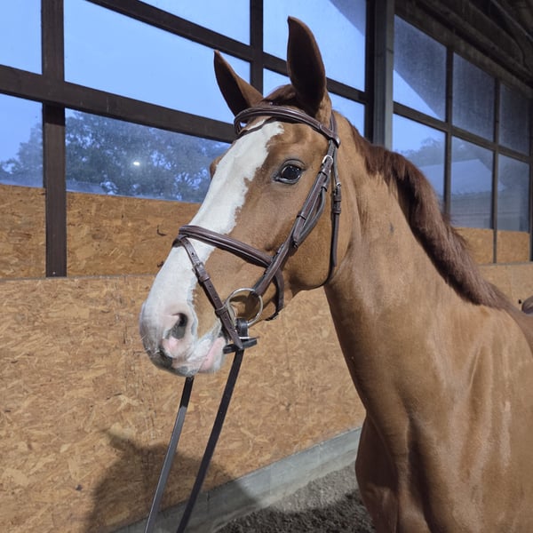 Carola, at just 4 years old, is already very confident and fearless. She is ready for show jumping and can be competed with in the near future. She is already comfortable riding alone in the open field with children. Thanks to her excellent rideability and gentle nature, this mare is also an attractive option for the ambitious recreational rider. Excellent X-ray images are available.