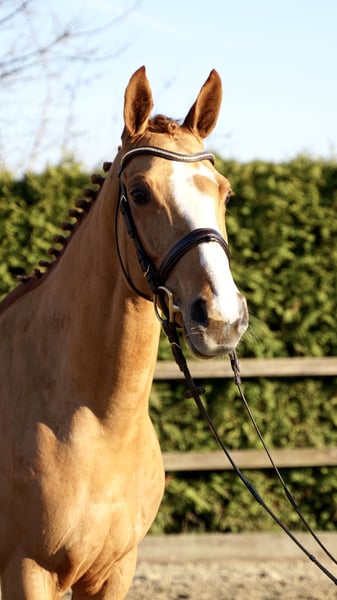 For sale is a stylish 6-year-old chestnut mare with already achieved placings in show jumping class A competitions. She consistently demonstrates motivation and willingness to perform. At the jump, she impresses with her caution, good overview, and solid technique. Under saddle, she is pleasant to ride, responds delicately to the aids, and has a positive attitude towards work. In daily handling, she is gentle and uncomplicated, making her suitable for ambitious amateurs as well as for further sporting development. A fantastic young prospect with great potential! A thorough vet check is available. Please contact 0172 3241632 for more information and videos.