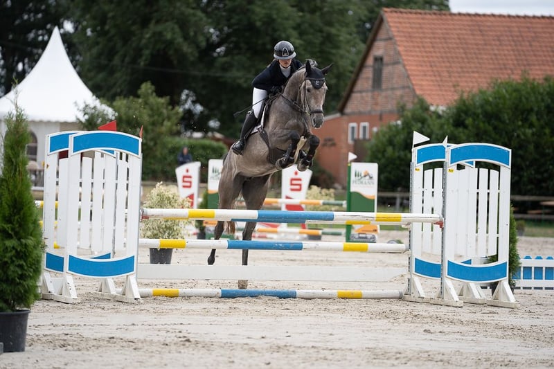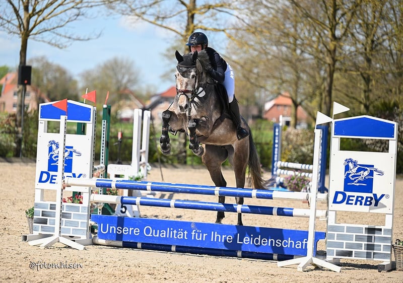 Zum Verkauf steht unsere 6jährige selbstgezogene Stute von Casino Berlin x Larimar x Leonid. „California“ ist mit angenehmen ‚Go‘ ausgestattet, nicht guckig und springt dabei vermögend und vorsichtig. Die Mutter ist bis 1,35m im Sport erfolgreich gewesen. Aktuell turniererfahren bis 1,10m, platziert bis Springpferde A. Röntgenbilder inkl. Rücken aus 01/2025 liegen ohne Befund vor. Bevorzugte Kontaktaufnahme per WhatsApp: 0162 9109751.