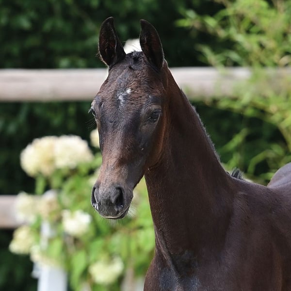 Beautiful, modern, and athletic son of Chacco Lover. His sire, Chacco Lover, competed successfully under the sport name Diablo Blanco with José Maria Larocca from Argentina up to 1.60 m. The dam's sire and Convoi, a son of Contender, produced the multiple high-placed Coverlady/Heiko Schmidt in the Hamburg Derby. Granddam Kora was herself successful in medium-level show jumping and is the sister of Katja, dam of the 1.55 m successful Al Pacino/Ulrich Kirchhoff, and Kassandra, who produced the approved stallion Cedric as well as three show jumpers competing at 1.40 m and above, including the 1.50 m successful Conto Blanco/Sharn Wordley (NZL).