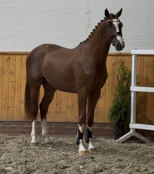 This young stallion is looking for new supportive hands. He is already very well lunged and is familiar with everyday handling. • Shoeing and loading friendly • Directly from the breeder • Great temperament and conformation • Very easygoing and clear-minded in everything • Top vet check is available He shows an excellent work ethic, is careful over jumps, and is equipped with a lot of talent. A promising horse for the big sport.