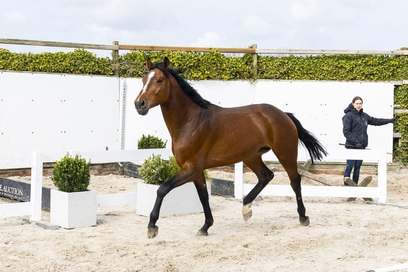 Zeer mooie, atletische sporthengst met veel bloed. Lichtvoetig en snel van de grond, met een goede afdruk en veel vermogen. Springt met een voorzichtige manier en laat zien dat hij overzicht en techniek heeft. Compleet op de sprong. Een paard met kwaliteit en instelling voor de sport. Vader Chacoon Blue 1.50m niveau Moderne hengst uit Chacco-Blue, zelf succesvol op 1.50m niveau en sterk in het doorgeven van vermogen en techniek. Moeder Bella Donna B Z (v. Balou du Rouet 1.50m) Geen eigen sportresultaten vermeld Moederlijn / stam Grootmoeder Grande Dame B Z (v. Grandeur 1.60m) Uit deze lijn: – Chacco Bella – 1.45m – Chaccamila – 1.40m – Thunder Bullet – 1.40m – Chabella Donna PS – 1.55m – Chacoon Fly PS – 1.50m – Chutter du Rouet PS – 1.50m – Dianaro B – 1.40m – Calou Grande PS – 1.35m – Action Rouet PS – 1.30m Verder in de stam: – Chacco Boy – 1.60m – Balou’s Lady – 1.60m – Landeur – 1.45m – Lawisangos – 1.60m – Cornet – 1.50m – Chalasanga PS – 1.55m – Fair Play B Z – 1.60m – Quantum B Z – 1.40m Goedgekeurde hengsten in de lijn: – Chacoon Blue – Chacco-Blue – Balou du Rouet – Baloubet du Rouet – Grandeur Zeer sterke internationale sportstam met meerdere 1.50m–1.60m paarden.