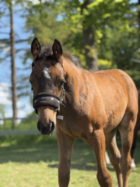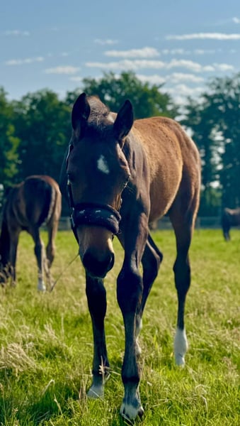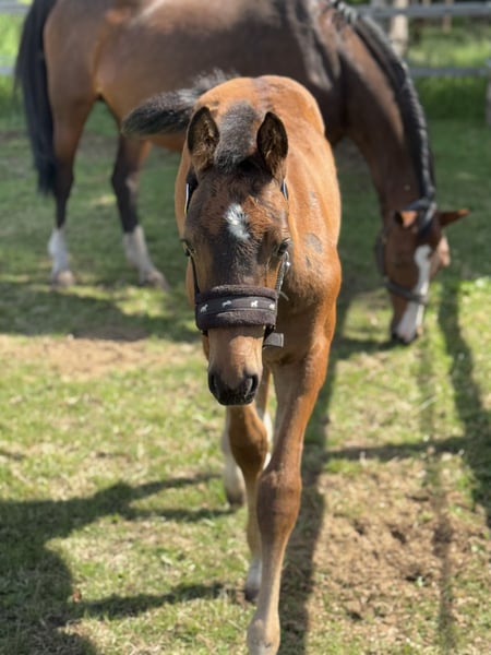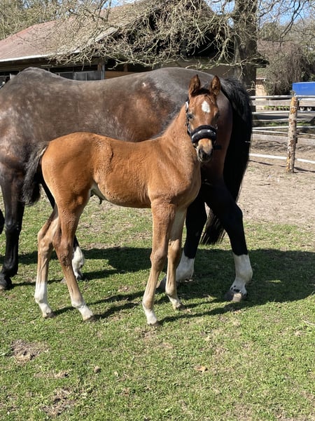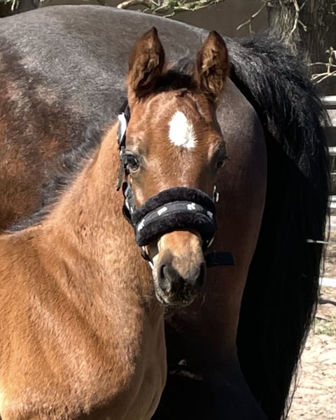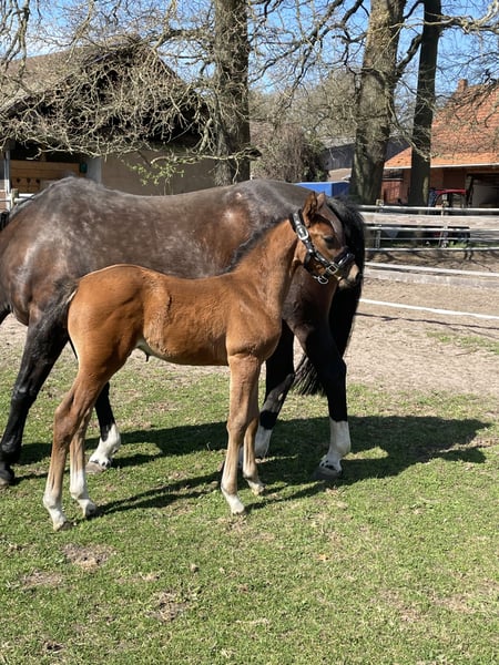 Percy de Mariposa S ist ein Anfang März geborenes Hengstfohlen von Poker de Mariposa aus einer Coleur Rubin x Pit Mutter. Percy kennt das Fohlen- ABC, den Schmied und ist aktuell abgesetzt. Er wächst im Herdenverband mit anderen Hengst-u. Stutfohlen auf. Bei Interesse kann er in dieser Gruppe auch während der Aufzucht verbleiben. Percy ist ein liebevoller, zutraulicher Hengst, der mit Kraft, Mut und Saft ausgestattet ist. All unseren Fohlen und Pferden sind Hunde, Katzen, Ziegen, Schweine und Trecker bekannt. Er wird bei einem Sammeltermin bei uns am Hof im Oldenburger Springpferde Verband eingetragen. Seine 2j. Schwester von Finnishing Touch Wareslage, sowie seine Mutter sind vor Ort und können zusätzlich besichtigt werden.