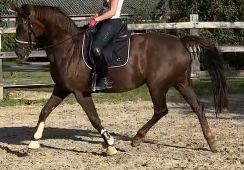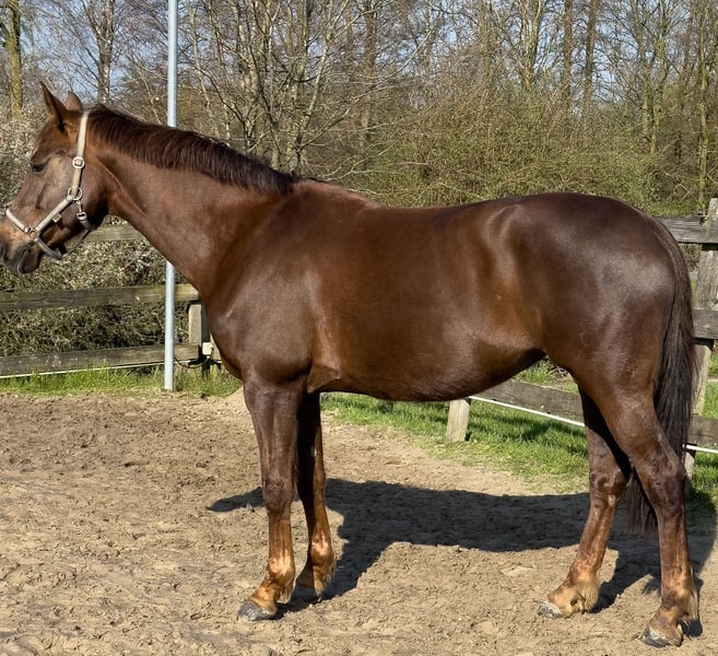 Brave mare, but not suitable for beginners, for sale. Light-footed and very well-mannered, she is very eager to work and quite attractive. She is trained up to dressage horse level L. Unfortunately, I no longer have the time to ride her due to my busy work schedule. Therefore, I am looking for a new home and a new life situation for her. She has a few quirks, and her biggest issue is that she cannot be left alone in the stable. Otherwise, she has no problem being ridden out of the stable. Saddle can be included. The 2022 pre-purchase examination (AKU) is available.