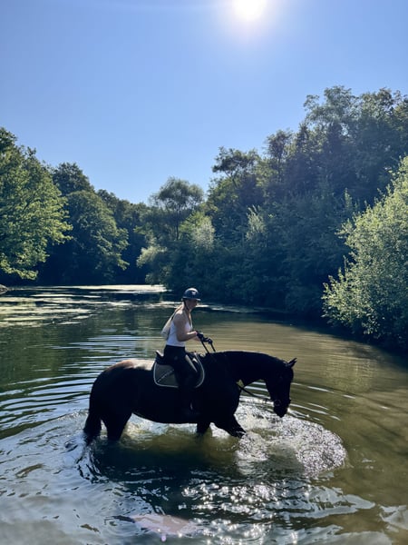 Diva ist eine Oldenburger Stute (geb. April 2012) und hat ein Stockmaß von ca. 1,80 m. Sie hat eine solide Grundausbildung, ist A-Springen sowie E-Dressur gelaufen. Aufgrund von zwei kleineren Befunden ist sie künftig eher im Freizeit- bzw. kleinen Turnierbereich zu sehen: vereinzelt Sprünge bis L-Höhe sind möglich, eine L-Dressur wird sie jedoch voraussichtlich nicht laufen können. Diva ist ein echtes Verlasspferd mit Herz – ihr Charakter ist Gold wert, im Umgang macht sie wirklich alles mit. Sie hat jedoch guten Zug nach vorn und ist daher nicht für Anfänger geeignet. Abstammung: Don Romantic x Hotline – ggf. auch interessant für die Zucht (sofern die Befunde das zulassen). Preisvorstellung: 6.000 € VB – hier gilt aber Platz vor Preis.