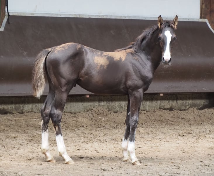Color and double predisposition are guaranteed here! Beautiful energetic and strikingly drawn mare, carrying for 2023 by the Körsieger, HLP winner and BuCha finalist Cafe au lait, who has been attracting attention for several years with his incredibly successful breeding in dressage and show jumping. This is how Cafe's Casimir" (Cafe au lait x Calido x Grannus) was celebrated prize top of the Oldenburg elite auction, is already series winner in dressage horses M at a young age, 7 years old in his first S-dressage again series winner! He is now victorious in international Intermediaire I. Stute Kasselmanns Cafe's Caletta (Cafe au lait x Calato) is also already S-Dressage and just international Grand Prix victorious. Cafe's Matts (Cafe au lait x Don Frederico) became the second most expensive dressage horse of the Oldenburg Summer Mixed Sales. Other young horses from jumping mother mares have already been placed several times in dressage horse tests A to M and are remarkably strong in movement and head-clear. There is no question that the Cafe au lait convince offspring in show jumping up to the heavy class. So the licensed Cafe's Champus under Rene Tebbel became vice world champion of the young horses and is also in deck use with us. Also licensed and from our breeding: Cafe Junior (Cafe au lait x Silvio I), international S* jumping placed. Cafe au lait itself was under Philipp Weishaupt Bundeschampionatsfinalist and has been successful up to S*** jumping, but has also been equipped with three spectacular GGA and trained dressage at S level. Stationed at Paul Schockemöhle, he has already produced several internationally successful show jumping horses, including "Royce", victorious in the FEI CSI5* $500,000 Rolex Grand Prix Wellington. The mare herself has been presented exclusively in show jumping despite dressage descent before she switched to breeding. She has three very good GGA according to her ancestry, but was also able to collect many placements in jumping horses L. Our foals get daily mineral food and foal starters, regularly EQUISTRO Haemolytan and Ipaligo Foal, worm cures and blacksmith are of course also a matter of course. The mothers also receive special mare food throughout the pregnancy, daily juice food and linseed oil, as well as hay ad libitum. So our offspring is always in the best state of health! Other foals and young horses from our own breeding on request. A small part can be found among the other ads. With us fall every year around 20-25 Cafe au lait foals. There are also always some pregnant broodmares for sale.