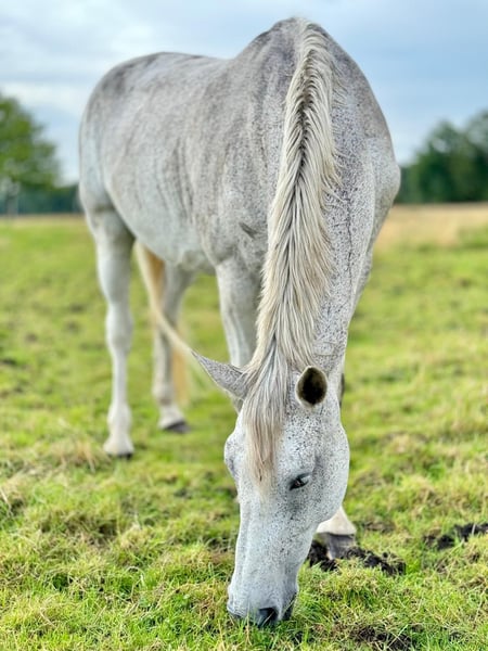 Schweren Herzens verkaufe ich meine 15 jährige Oldenburger Schimmelstute „Celina“ von Cellestial x Curacao. Celina wird aktuell von einem 13 jährigen Mädchen geritten (ist dieses Jahr bereits E-Dressur und E-Springen gestartet und platziert und hat auch ihr Reitabzeichen mit ihr absolviert). Sie ist nicht guckig oder schreckhaft. In jüngeren Jahren ist Celina bereits S Springen gelaufen und M** gesiegt. Celina ist mit tollen Bewegungen ausgestattet und hat ein enormes Sprungvermögen, daher könnte ich sie mir aufgrund ihrer tollen Abstammung auch sehr gut als Zuchtstute vorstellen. Sie hatte bereits ein Fohlen. Celina ist ca. 1,69m groß, schmiedefromm, verladefromm und herdenverträglich (eher rangniedrig). Sie geht gerne in der Gruppe ins Gelände. Alleine ausreiten geht nur mit etwas Durchsetzungsvermögen, da sie ein wenig klebt. Sie ist kerngesund und war bei mir nie krank. Ich habe selbst 2021 eine Aku mit Röntgenbildern machen lassen - ohne Befund. Ich wünsche mir für Celina ein tolles Zuhause, in dem sie täglich Auslauf bekommt. Sie soll kein Sportgerät sein, was noch M oder S Springen laufen muss. Ich könnte sie mir gut als Freizeitpferd im E und A Bereich sowohl in Springen als auch Dressur vorstellen. Allerdings ist sie mit viel Energie ausgestattet und möchte gern gearbeitet werden. Also nicht für Anfänger geeignet, auch wenn sie brav ist. Hat viel Go und kann stark werden, aber immer lieb dabei. Bei Interesse gerne unter folgender Nummer melden. 017683075565
