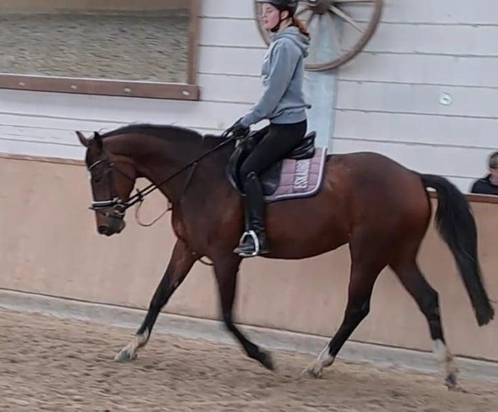 Schweren Herzens müssen meine Schwester und ich uns aus beruflichen Gründen dazu entscheiden, für unsere Stute Luna ein neues Zuhause zu suchen. Sie ist total lieb an der Hand wie auch unterm Sattel und wurde von uns freizeitmäßig hauptsächlich Dressur geritten. Auch beim Ausreiten ist sie sehr brav, verlässlich, immer händelbar und geht auch alleine ins Gelände. Sie ist kein absoulutes Reitanfänger Pferd, da sie einen Reiter braucht, der sich hin und wieder mal durchsetzen können muss. Wenn du ein treues und liebes Freizeitpferd suchst und gute Erfahrungen mitbringst, ist Luna das perfekte Pferd für dich. In der Hinterhand hat sie ein leichtes Shivering, weshalb sie beim Reiten hin und wieder kleine Taktunreinheiten hat, deshalb sollte sie freizeitmäßig geritten werden. Wenn man ein paar Sachen bei der Fütterung und beim Training beachtet, merkt man davon jedoch kaum etwas. Wenn Luna dein Interesse geweckt hat oder du noch Fragen hast melde dich doch gerne!