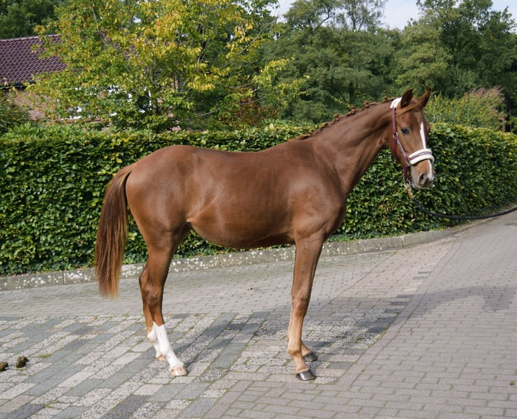 **Verkaufsanzeige: Traumhafte Oldenburger Stute zu verkaufen!** Wir bieten eine vielversprechende Oldenburger Stute zum Verkauf, die im Jahr 2024 das Licht der Welt erblickt hat. **Merkmale:** - **Rasse:** Oldenburger - **Geschlecht:** Stute - **Geburtsjahr:** 2024 - **Farbe:** Dunkelfuchs - **Stockmaß:** aktuell 152cm wird ca 165 cm - **Eignung:** Springen und Dressur Diese talentierte Stute überzeugt nicht nur durch ihre ansprechende Statur, sondern auch durch ihr hervorragendes Potenzial.Sie besitzt 3 ordentliche Grundgangarten wobei der Schritt hervorzuheben ist.Wer auf der Suche nach einem verlässlichen Partner für Freizeit oder den Turniersport ist, der ist hier absolut richtig. Sie besitzt einen traumhaften ausgeglichenen Charakter ist absolut klar im Kopf,aber zeigt sich dennoch definitiv nicht schüchtern. Sie ist bei mir geboren, genießt beste Aufzucht mit allem was dazu gehört. Regelmäßig entwurmt,dem Schmied vorgestellt und geimpft. Bei Interesse oder weiteren Fragen freuen wir uns über Ihre Kontaktaufnahme!