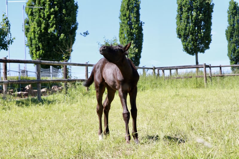 For sale is a 2024-born Oldenburg mare. The young mare is familiar with the basics of foal handling and is very easy to handle. She has been raised in a herd environment from a young age and is well socialized. In her interactions, she is very gentle, friendly, and straightforward, attentive, and human-oriented. She is compatible and socially confident within the herd. A promising young mare suitable for breeding or for an ambitious sport career.