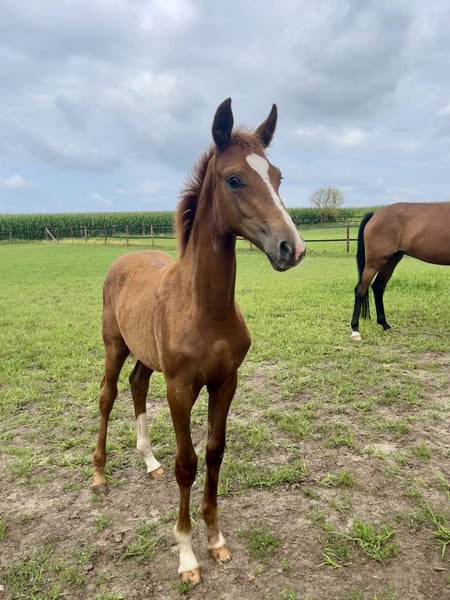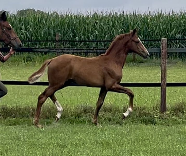 Prämiertes Stutfohlen von Escaneno x Sir Donnerhall x Fürst Romancier vom 05.04.2025 zu verkaufen. Hochmodernes, elegantes, typstarkes Fohlen, das mit sehr guten Grundgangarten, viel Schwung und Beweglichkeit ausgestattet ist. Außerdem ist der hervorragende Charakter des Fohlens hervorzuheben. Der Vater Escaneno besticht durch seine überragende Rittigkeit. Des Weiteren verfeinern die Vererber-Hengste Sir Donnerhall und Fürst Romancier auf der Mutterseite mit ihren Top-Qualitäten das Pedigree dieses Stutfohlens. Bei Interesse gerne melden unter 0173 9263870.