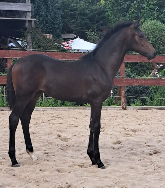A noble and typy filly born on April 22, 2024. Oldenburg foal premium. Three very good basic gaits. Mastering the foal ABC and very people-oriented. About the dam line: Sorento Old, main premium winner '07, victorious in the heavy class with Stefanie Wolf. Sandro Hit / Donnerhall / Pik Bube. Königsstuhl xx, English Thoroughbred. Has won the Triple Crown and is paternal in the pedigree of Hale Bob Old (Ingrid Klimke).