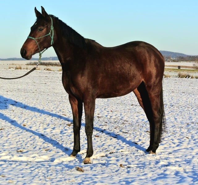 Urodzona w marcu 2022 roku brązowa klacz Oldenburska, pochodząca od Vivaldos x Belissimo M x Dimaggio. Obecnie ma około 163 cm wzrostu i nadal rośnie (obecnie tył jest wyraźnie wyższy). Bardzo łagodna w codziennym kontakcie. Bez problemu można ją zaczepić, wyczyścić, przedstawić kowalowi, odrobaczyć itp. Wszystko, co jest potrzebne, aby jako koń dobrze funkcjonować. Klacz jest lonżowana i zna uprząż oraz siodło. Nie była jeszcze jazdą siodłową. Ta młoda dama szuka kogoś, kto nawiąże z nią relację i będzie chciał pracować głównie z ziemi. Reaguje na najmniejsze sygnały z dużą precyzją. Jeśli nie ufa osobie, jest raczej powściągliwa i sceptyczna, jednak nigdy nie stanie się wobec człowieka złośliwa. Polecana dla doświadczonych jeźdźców i osób z doświadczeniem w pracy z młodymi końmi. Dysponujemy zdjęciami rentgenowskimi z drobnymi zmianami, które w przypadku poważnego zainteresowania można pokazać lekarzowi weterynarii. Chcesz uzyskać więcej informacji? Skontaktuj się ze mną. Proszę, aby wiadomości nie były wysyłane z czystej ciekawości, lecz tylko w przypadku poważnego zainteresowania.