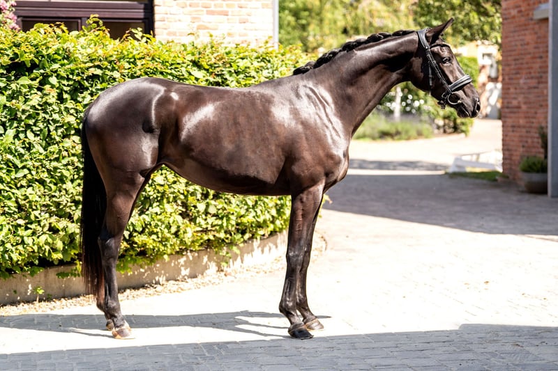 Te koop aangeboden: een getalenteerde Oldenburger merrie, geboren in 2022. Deze elegante zwarte merrie heeft momenteel een schofthoogte van 164 cm en overtuigt door haar aantrekkelijke bouw en harmonieuze uitstraling. Ze toont groot potentieel in de dressuursport en heeft al eerste basiskennis in de opleiding. Haar vriendelijke en openhartige karakter maakt haar een ideale partner voor ambitieuze ruiters die plezier hebben in het werken met een jong paard. De merrie is braaf in de omgang, goed opgevoed en toont een hoge leergierigheid. Ze is zowel geschikt voor de recreatieve als de wedstrijdsport. Bij interesse of voor meer informatie sta ik u graag ter beschikking. Bezichtigingen zijn in overleg mogelijk. Mis deze kans niet om een veelbelovende dressuurmerrie in uw leven te halen!