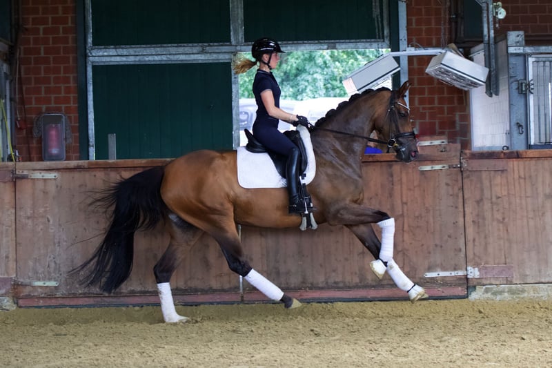 Jument Oldenburg, 2021, environ 1,67 m ⚜️ Jovian – San Rubin ⚜️ Une jument avec toutes les possibilités On ne peut pas s'en empêcher – notre pouls monte à chaque fois que nous voyons cette jument ! Elle a été montée doucement cette année et se trouve actuellement au niveau de cheval de selle. Une présentation publique n'a pas encore eu lieu. Cette jument allie haute qualité, caractère impressionnant et une exceptionnelle aptitude à la monte. Malgré son jeune âge, elle se montre déjà sûre d'elle et fiable – et elle est en plus magnifique ! Pour nous, elle représente l'image idéale d'une jument de sport moderne – avec le type de stallion, beaucoup d'expression et de présence. Nous sommes particulièrement enthousiasmés par sa progression impressionnante semaine après semaine – elle apporte chaque jour de la joie et dépasse continuellement ses limites. Il n'y a absolument rien de négatif à signaler. Nous sommes convaincus : voici un excellent cheval de dressage avec la meilleure attitude. Un véritable bijou pour les cavalières et cavaliers de dressage ambitieux ainsi que pour les éleveurs. ✔️ Bon contrôle vétérinaire actuel incluant le dos et le cou ✔️ De première main directement de l'éleveur Localisation : Lienen Pour plus d'informations, n'hésitez pas à contacter : +49 173 3013499 ou +49 174 2737377