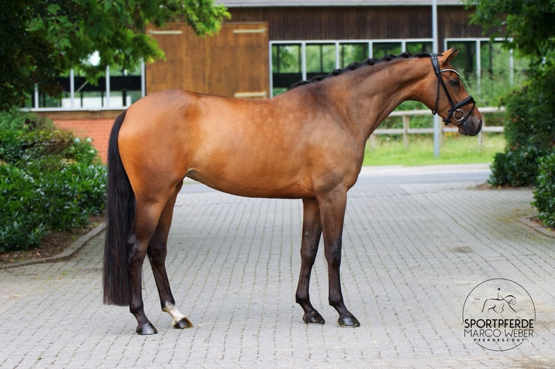 Oldenburg mare, 2021, approx. 1.67 m ⚜️ Jovian – San Rubin ⚜️ A mare with all possibilities You can't help it – our pulse goes up every time we see this mare! She has been gently started under saddle this year and is currently at riding horse level. A public presentation has not yet taken place. This mare combines high quality, impressive character, and exceptional rideability. Despite her young age, she already shows herself to be confident and reliable – and she is also beautiful! For us, she is the ideal picture of a modern sport mare – standing in stallion type, with much expression and presence. We are particularly excited about how wonderfully she develops from week to week – she brings joy every day and continuously surpasses herself. There is absolutely nothing negative to report. We are convinced: Here stands a great training horse with the best attitude. A true gem for ambitious dressage riders and breeders ✔️ Good current vet check including back and neck available ✔️ From first hand directly from the breeder Location: Lienen For more information, please contact: +49 173 3013499 or +49 174 2737377