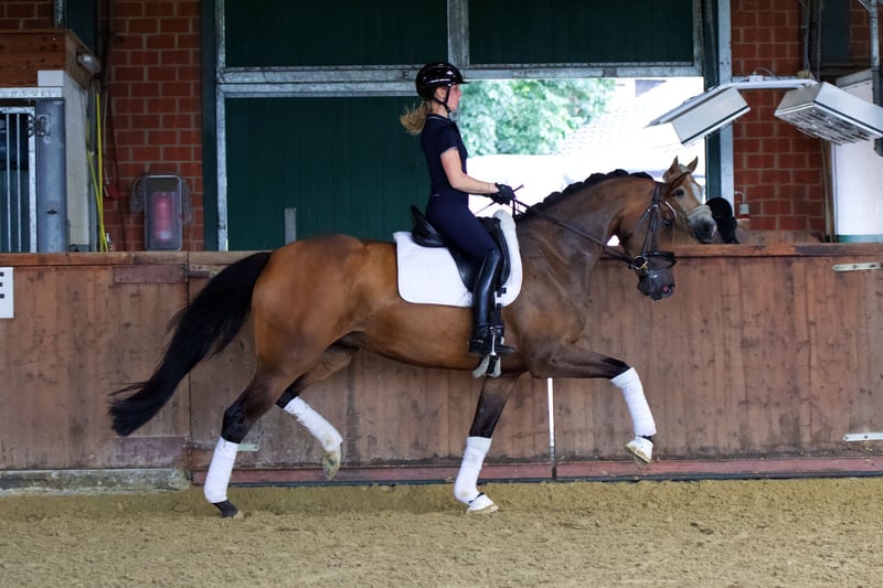 ldenburger Stute, 2021, ca. 1,67 m ⚜️ Jovian – San Rubin ⚜️ Eine Stute mit allen Möglichkeiten Man kann nicht anders – unser Puls geht jedes Mal nach oben, wenn wir diese Stute sehen! Sie wurde in diesem Jahr schonend angeritten und befindet sich aktuell auf Reitpferde-Niveau. Eine öffentliche Vorstellung hat bisher noch nicht stattgefunden. Diese Stute vereint hohe Qualität, beeindruckenden Charakter und eine außergewöhnliche Rittigkeit. Trotz ihres jungen Alters zeigt sie sich bereits souverän und verlässlich – und dabei ist sie auch noch wunderschön! Für uns das Idealbild einer modernen Sportstute – im Hengsttyp stehend, mit viel Ausdruck und Präsenz. Besonders begeistert uns, wie toll sie sich von Woche zu Woche entwickelt – sie macht einfach jeden Tag Freude und wächst kontinuierlich über sich hinaus. Es gibt absolut nichts Negatives zu berichten. Wir sind überzeugt: Hier steht ein tolles Ausbildungspferd mit bester Einstellung. Ein echtes Juwel für ambitionierte Dressurreiterinnen und -reiter sowie für Züchter ✔️ Guter aktueller TÜV inkl. Rücken und Hals vorhanden ✔️ Aus erster Hand direkt vom Züchter Standort: Lienen Weitere Informationen gern unter: +49 173 3013499 oder +49 174 2737377
