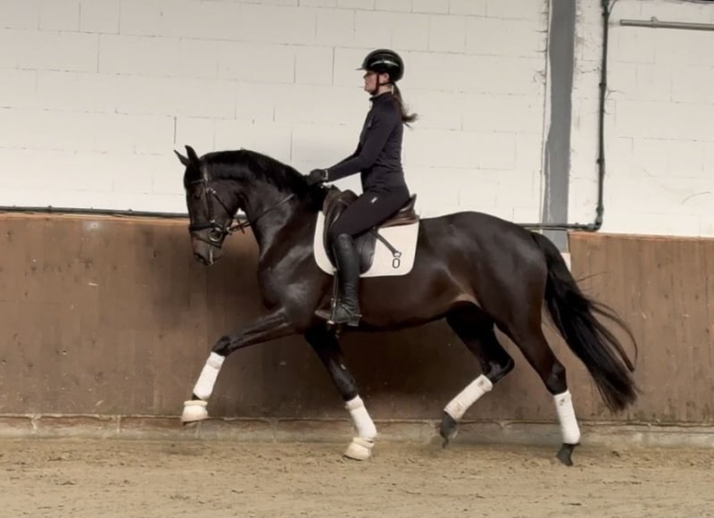 Liebe Kaufinteressenten, Für Fragen oder Terminvereinbarungen senden Sie uns bitte eine WhatsApp oder E-Mail. Telefonisch erreichen Sie uns WERKTAGS und am besten gegen Mittag. Sollte dem nicht so sein, bitte einfach eine Nachricht schreiben und wir melden uns zurück. Wir freuen uns auf Ihre Kontaktaufnahme! „Ofira“ ist eine wunderschöne junge Dressurofferte, die über drei gute Grundgangarten und eine schöne Rittigkeit verfügt. Bereits nach kurzer Zeit unter dem Sattel möchte sie immer alles richtig machen, ist für ihr Alter schon sehr unerschrocken und gibt dem Reiter bereits ein tolles Sitzgefühl mit einer angenehmen Anlehnung. Sie ist sehr menschenbezogen und kuschelt gerne. Eine hübsche junge Dame für eine tolle Zukunft im Dressurviereck und zum absolut lieb haben! Direkt vom Züchter. Aktueller TÜV vorhanden.
