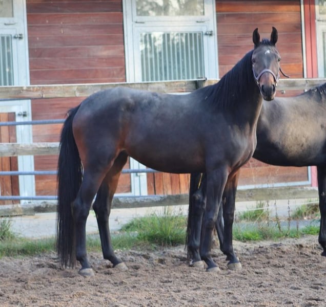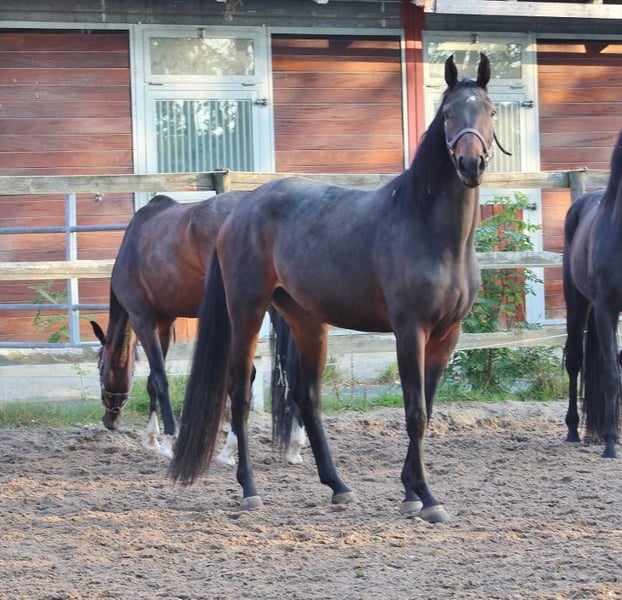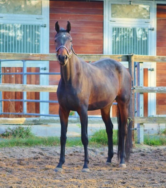 Wenn was Besonderes für die Freizeit/Dressur/Zucht gesucht wird !! Sehr schöne und korrekte dunkelbraune Oldenburger Jungstute 2022 von Fair Deal/Ron rubin aus Grand Prix/Elite Stamm (Waldhexe Stamm) Mutter war bis M** Sport erfolgreich und bereits S** ausgebildet. Bruder und Schwestern zur Mutter sind internationale Grand Prix Pferde sowie gekörte Deckhengste, Championatperde, Elitestuten... Großmutter und Urgroßmutter sind ebenfalls Elitestuten und Hengst Mütter. Großmutter ist Oldenburger Siegerstute bei den Reitpferden und hoch platziert am dt. Bundeschampionat. Der Waldhexe Stamm zählt zum Tafelsilber in Oldenburg ! Stute hat wunderschöne Oberlinie und ist absolut Kopf klar und umgänglich. Bewegt sich sehr gut und wird sicher eine tolle Partnerin auch für alle Tage werden ! Steht im Moment noch in Herdenverband und ist roh. Kennt aber natürlich alle Basisielemente eines Jungpferdes wie führen, Füsse geben usw.. Stute hat alte reaktionslose Narbe am Fesselgelenk. Keine Beainträchtigung dadurch. Sie war nie krank oder lahm bisher. Video (sie ist die hellere von den beiden) bei youtube https://www.youtube.com/watch?v=b_SsLMuGF84 Steht in 01471 Radeburg bei www.quadriga-pferdehaltung.de