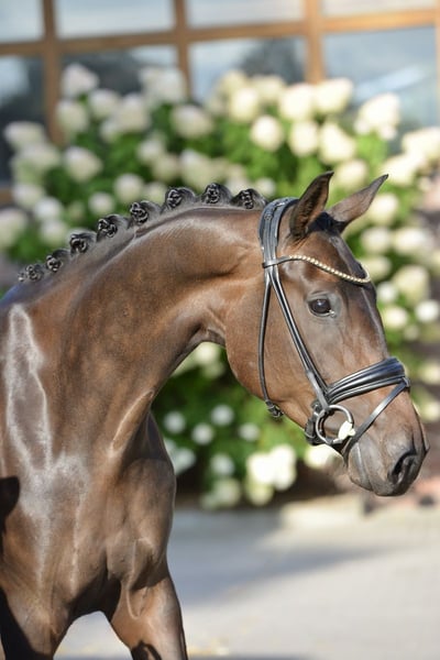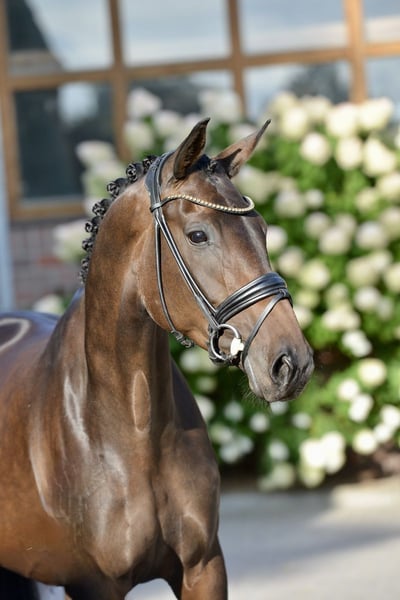 Elegant dam met top scores Dancing Queen 2021 oude merrie, afstammend van Dynamic Dream - Superstar - Rohdiamant Bekijk video: https://youtu.be/k7-DUez8sC8 Een schoonheid zoals men zich wenst, bovendien goed bereden, helder van geest en van topkwaliteit: dat is Dancing Queen, die na haar zeer goede merrietest de hoofdprijskeur kreeg en werd uitgenodigd voor de Elitestutenschau in Rastede. Natuurlijk blinkt ze ook uit in de wedstrijdsport met tweede plaatsen en individuele scores van 8,5 voor draf en 9,0 voor stap en galop. Een topmerrie voor hoge eisen! Haar vader, Dynamic Dream, brengt opvallende nakomelingen met uitstekende prestaties. Uit de moederlijn van Firmament komen diverse Grand Prix-paardjes zoals Athlet, Dono di Maggico, Dream Diamond, en de S-dressuurpaarden Ferdonia, Duca di Maggio, Dolcetto di Maggico/Inter II, evenals de gekeurde RMF Cadeau de Muze, succesvol op 1,65 m springen. Digital röntgentüv aanwezig Locatie: 49685 Emstek
