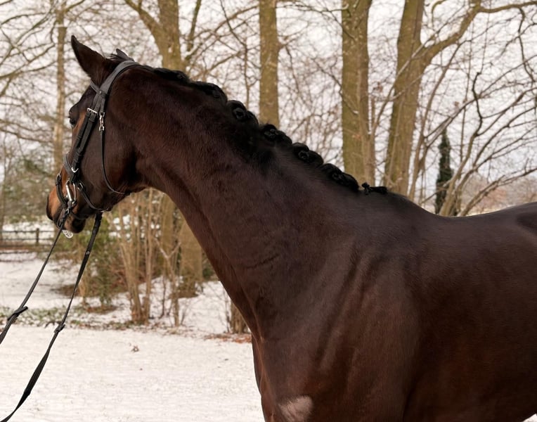 Direct from the breeder: Now a four-year-old mare by Bonjour out of a mare by Romanov - Farewell. The mare is approximately 1.68 m tall, very leggy, elegant, and noble, and is still fully in development physically. "Räuberin" has three above-average conformation points and, with proper and gentle training, will make an excellent dressage horse. She is a sensitive mare that needs trust and time, and therefore is not suitable for beginners. Her sister includes Ronja Räubertochter OLD, bronze medalist at the Bundeschampionate for three-year-olds in 2020 and Oldenburg Reserve Champion Mare on the Brillantring. The mare has a clean X-ray certificate and is in excellent health. She is currently in Ibbenbüren (North Rhine-Westphalia) for starting under saddle at a training stable.