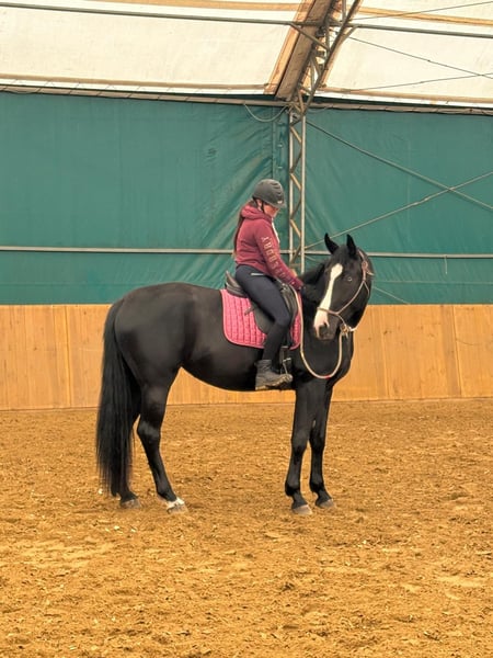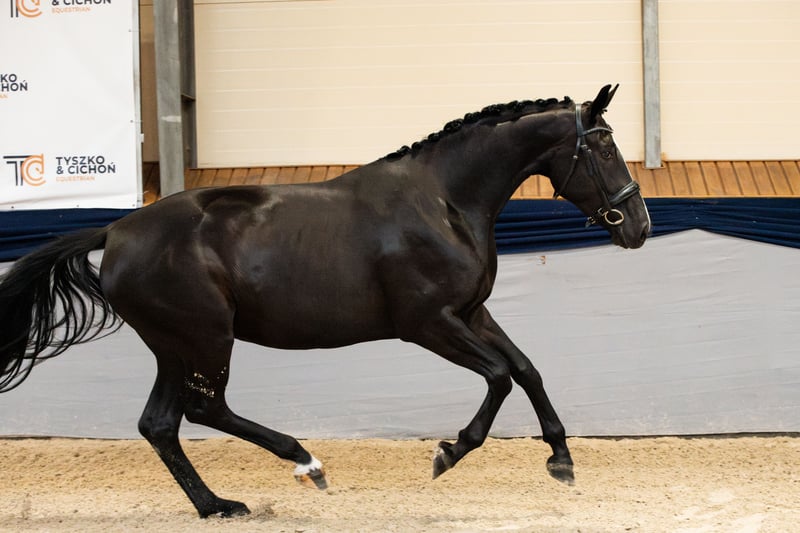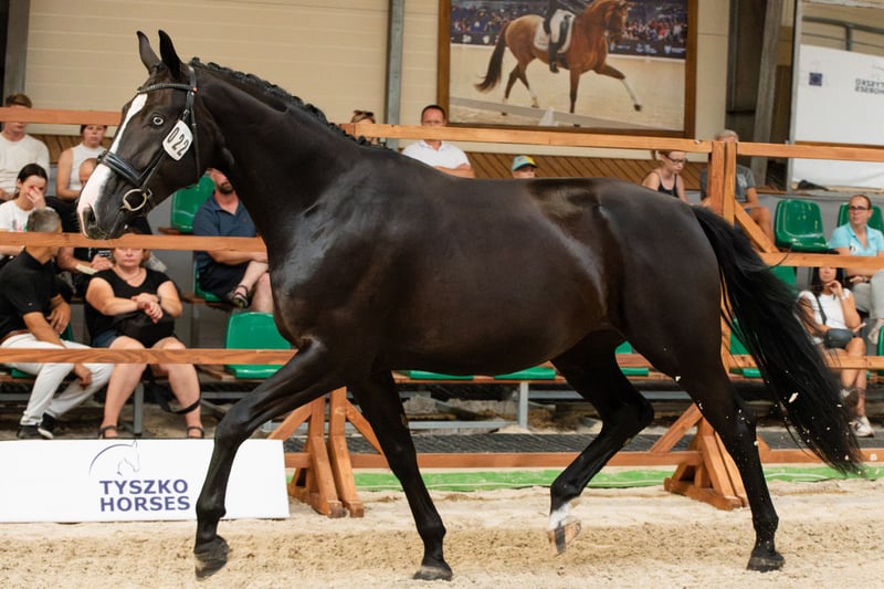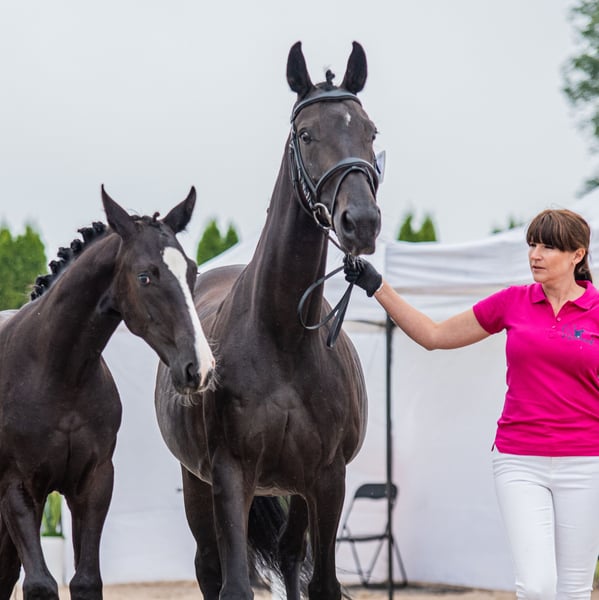 **Anuncio de venta de caballo** Se vende hermosa yegua oldenburga, nacida en 2022. - **Raza:** Oldenburgo - **Sexo:** Yegua - **Año de nacimiento:** 2022 - **Color:** Negra - **Altura:** 173 cm - **Destino:** Doma clásica La yegua se destaca no solo por su magnífico aspecto, sino también por sus excelentes cualidades para la doma clásica. Se ofrece una yegua con un pedigree destacado en doma. Hija del semental Total Hope (Weihegold, Totilas) - de la élite mundial, y de la madre (Rosandro, De Niro), que es hermana completa del caballo olímpico Roberto Carlos MT. Yegua de excepcional belleza con un ojo azul, muy inteligente y sociable, además de ser muy valiente. Ideal para el deporte en manos responsables, o como un caballo dedicado para un solo propietario. Actualmente tiene 3.5 años, ha aceptado al jinete sin problemas. La yegua es alta y con buena estructura - actualmente mide más de 170 cm y sigue creciendo. Es un caballo de mi cría. Venta solo en manos responsables, realmente buenas y conscientes. Ubicación: Varsovia, precio 25,000 €.