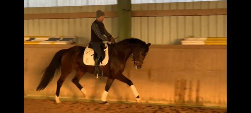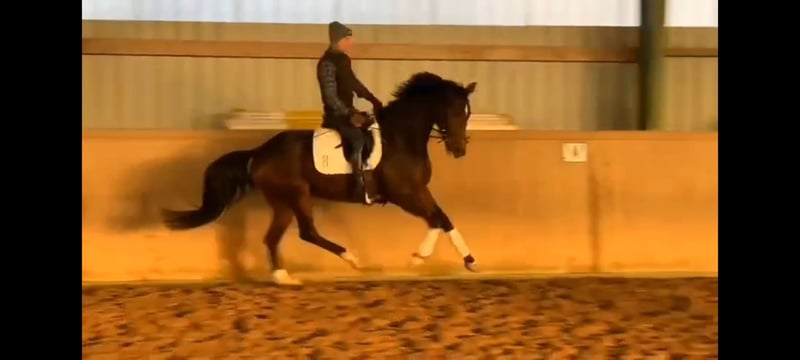 Dakota wurde 4-jährig angeritten und ist seit August 25 unter dem Sattel. Sie verfügt über sehr gute Grundgangarten, Elastizität und einer super Rittigkeit. Sie hat eine tolle Einstellung zur Arbeit, eine hohe Lernfähigkeit, ist immer vorwärts, dabei leicht zu regulieren, und vermittelt ein prima Reitgefühl. Dakota ist lieb, menschenbezogen, kerngesund und kennt den Tierarzt nur vom Impfen. Sie war Prämienfohlen 2021. Ihre Mutter von Desperados-Placido, hat eine gute Stutenleistungsprüfung absolviert. Sie zeichnet sich durch ihren tollen Charakter und ihre überragende Rittigkeit aus. Der Vater, Follow Him's Schönweide, war Oldenburger Hauptprämiensieger 2019. Er zeichnet sich aus durch einen exelenten Charakter, Bewegungsqualität und Rittigkeit. Bei Interesse könnte Dakota sofort ausprobiert werden. Sie steht in der Nähe von Boizenburg. Es sind sehr gute Röntgenbilder vorhanden.