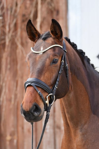 Zum Verkauf steht eine 5-jährige, typvolle Dressurstute mit hervorragender Abstammung von Fynch Hatton x Sir Donnerhall I. Firefly überzeugt durch ihren eleganten, großrahmigen Körperbau und ihre natürliche Ausstrahlung. Sie ist eine sehr feinfühlige und sensible Stute, die durch ihren lieben, dem Menschen zugewandten Charakter besticht. Im Umgang zeigt sie sich stets brav und angenehm. Unter dem Sattel präsentiert sie sich rittig und motiviert, benötigt jedoch einen einfühlsamen Reiter mit Erfahrung, der ihr die nötige Sicherheit und Zeit gibt. Sie ist kein Anfängerpferd, sondern sucht einen kompetenten Förderer, der sie ohne Druck weiter ausbildet. Gibt man ihr die nötige Ruhe und das richtige Maß an Unterstützung, entwickelt sie sich zu einem Pferd mit vielversprechendem Potenzial für den Dressursport. Eine tolle Partnerin für Reiter, die ein sensibles Nachwuchspferd mit Perspektive suchen.