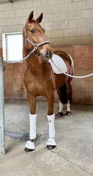 Franzi è nata e cresciuta con noi, è stata messa sotto sella e ora viene lavorata cinque volte alla settimana. Conosce il lavoro al doppio longe, il lavoro a terra, l'addestramento in dressage, un po' di salto e naturalmente anche le uscite in passeggiata. La cavalla si presenta senza paura e con una grande disponibilità al lavoro. Dotata di un'ottima muscolatura posteriore, si muove sempre con fluidità, offrendo così una sensazione di stabilità molto buona in sella. Immaginiamo questa cavalla molto bene sia nel dressage, come anche nel settore del tempo libero di livello superiore. È semplicemente un cavallo meraviglioso, che cerca un nuovo proprietario appassionato. Le radiografie sono disponibili senza riscontrare anomalie e possono essere inviate in qualsiasi momento.