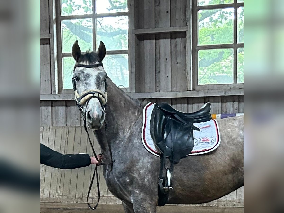 Questa cavalla dalle gambe lunghe colpisce per il suo aspetto elegante e per il suo grande potenziale nello sport del dressage. È ideale per i cavalieri ambiziosi che cercano un cavallo con un potenziale per il grande sport. Super cavalcabile. Chiara nella testa. Ben educata. Cavalcata al massimo una volta a settimana. Niente affondi, basta salire e divertirsi. Ancora a piedi nudi. Direttamente dall'allevatore. Se siete interessati o avete altre domande, saremo lieti di ascoltarvi.