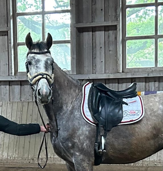 Diese langbeinige Stute besticht durch ihre elegante Erscheinung und ihr großes Potenzial für den Dressursport. Sie ist bestens geeignet für ambitionierte Reiter, die ein Pferd mit Potenzial für den großen Sport suchen. Noch nicht viel geritten. Sie steht im Offenstall. Läuft noch barfuß. Direkt vom Züchter. Bei Interesse oder weiteren Fragen freuen wir uns über Ihre Nachricht.