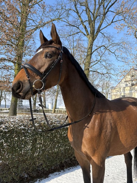 Verkaufe eine Oldenburger Stute, geboren im Jahr 2020, 1,64 m groß. Sie ist angenehm zu reiten, ehrlich, bequem und besitzt eine gute, großzügige Bewegungsqualität sowie einen sehr guten Kopf. Die Stute ist bei allen Pflegearbeiten problemlos (Hufe auskratzen, Waschen, Putzen). Sie trägt im Sattel (nicht überfordert) die drei Grundgangarten sowie die Longe (hauptsächlich für Dressurtraining genutzt, kann Elemente auf dem Niveau der Klasse P ausführen). Außerdem kann sie mit der Handarbeit am Halfter gearbeitet werden. Sie war nie kolikanfällig, hat keine Verletzungen, schluckt nichts, beißt nicht, war nie tragend (sehr interessante Abstammung). Das Pferd ist eher für einen mittelmäßig fortgeschrittenen Reiter geeignet, mit dem sie ein tolles Team bilden wird. Preis: 38.000 € VB