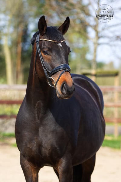 We are offering this wonderful young mare as a direct daughter of the legendary Totilas. Her pedigree leaves nothing to be desired. Totilas - Don Schufro - Sandro Hit - Argentinus - Furioso II. Five centuries of top sires in an impressive lineage! Her dam, Waldelfe, is an Oldenburg Verband premium mare and has produced several auction foals. The granddam, elite mare Waldblume, was a Rasteder Brilliantring mare and has also produced auction foals and successful mares. She descends from the Oldenburg Stamm Waldhexe. „Sternchen“ was backed at age four and has been under saddle until May 2025. Therefore, she could be easily further trained after foaling. She has a solid foundation and is equipped with three very good gaited qualities. Sternchen is pregnant by Fiji, a Pavo Cup finalist, due in May 2026. There is also the possibility that she will foal here. Anyone looking for a breeding jewel with top character and an option as a riding horse is welcome to contact us. Video will follow shortly. For more information, please call 01749049299.
